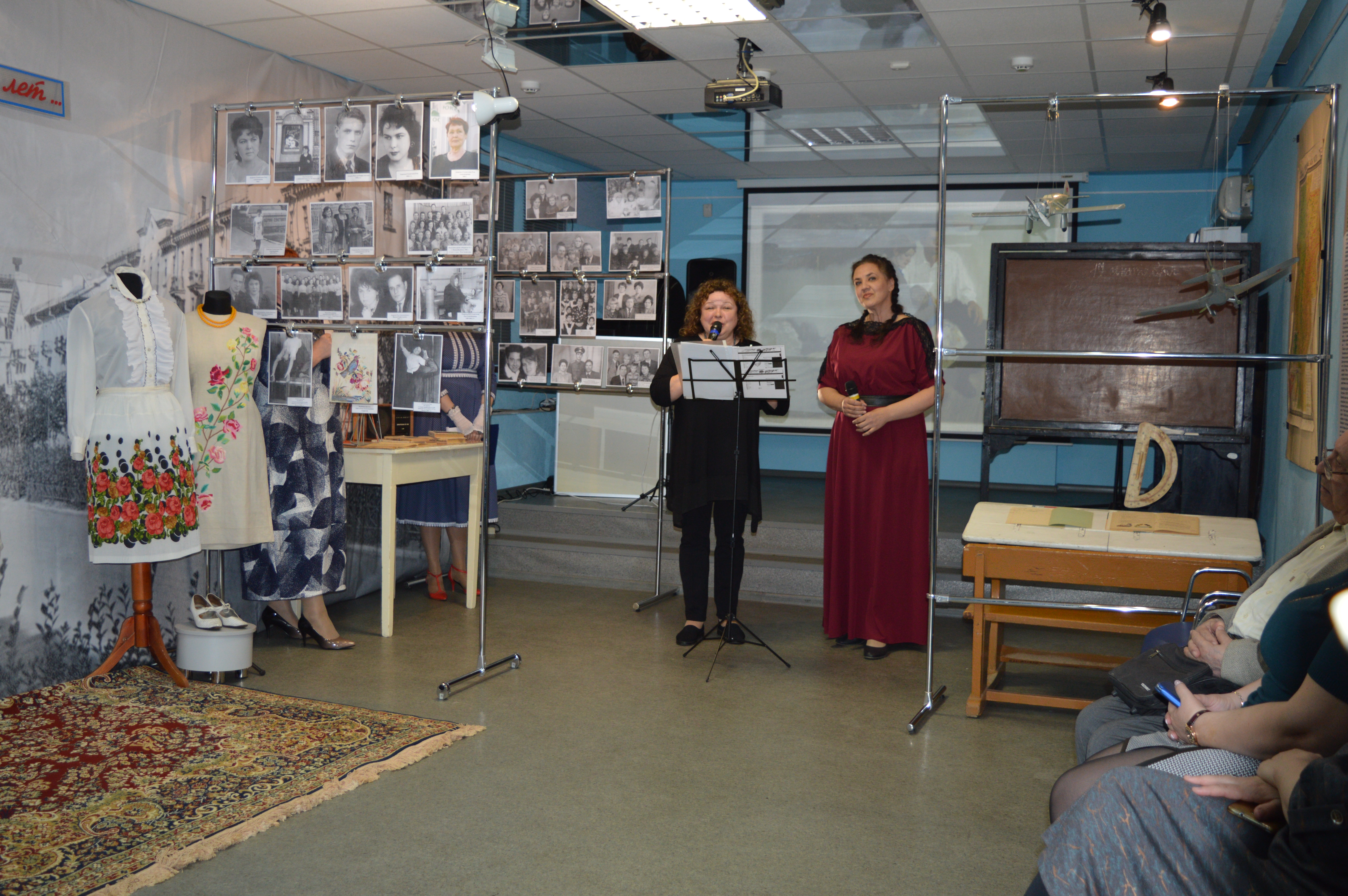 Полнее погрузиться в ту эпоху посетителям помогли любимые песни семьи в исполнении Натальи Андреевой, дочери одной из героинь выставки, и солистки заслуженного коллектива народного творчества РФ «Народного ансамбля песни и танца «Россияне» Елены Изгарской.