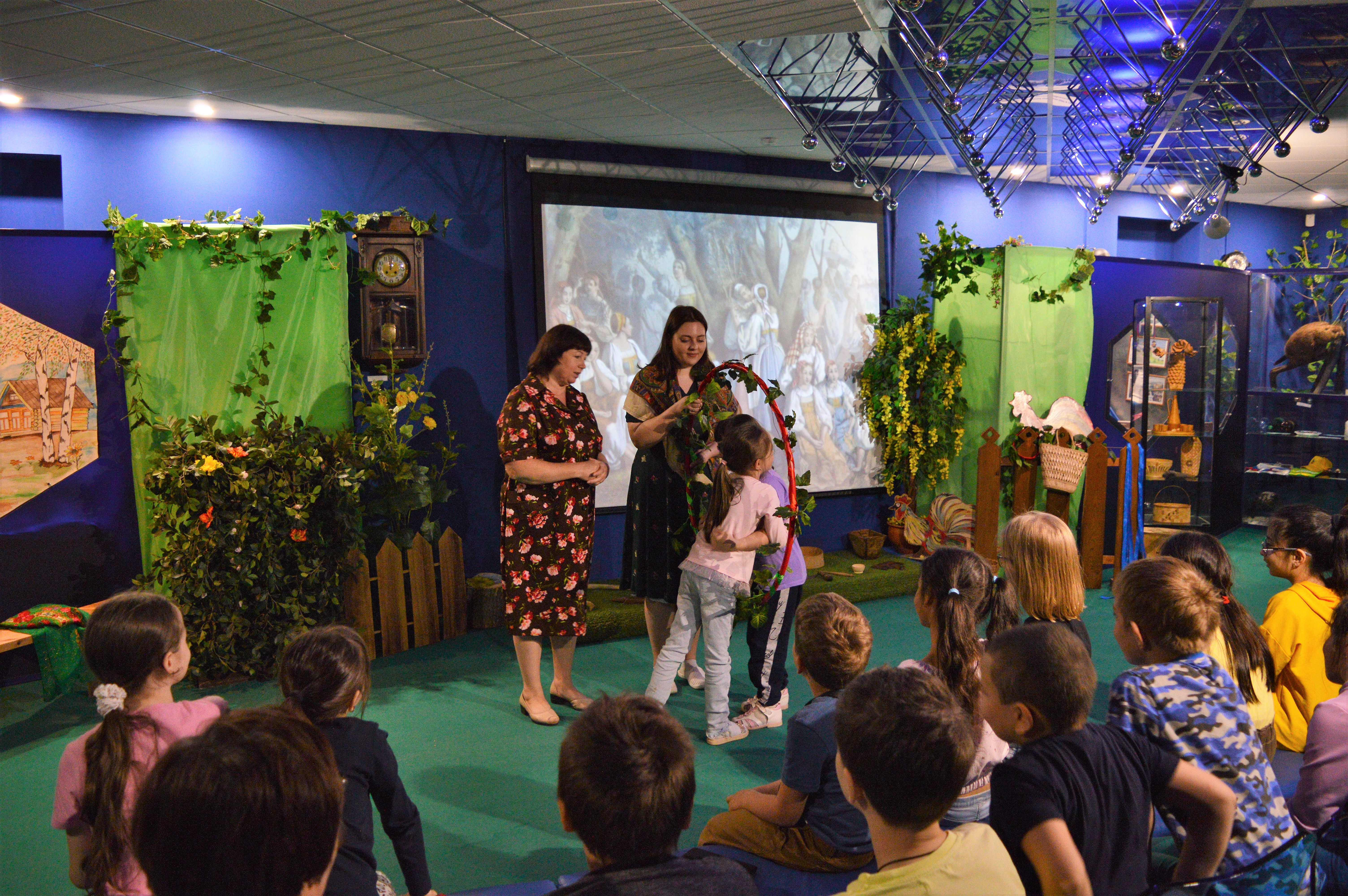 Одно из мероприятий – «Под колокольный перезвон приходит Троица в наш дом» – проводится в рамках объявленного года народного искусства и нематериального культурного наследия. Театрализованное мероприятие рассказывает о том, где и кем была построена первая Свято-Троицкая церковь и как праздновали православный праздник Святой Троицы на Руси. Школьники с интересом знакомятся с основными обрядами и традициями праздника, осваивают народные игры и праздничные потехи.