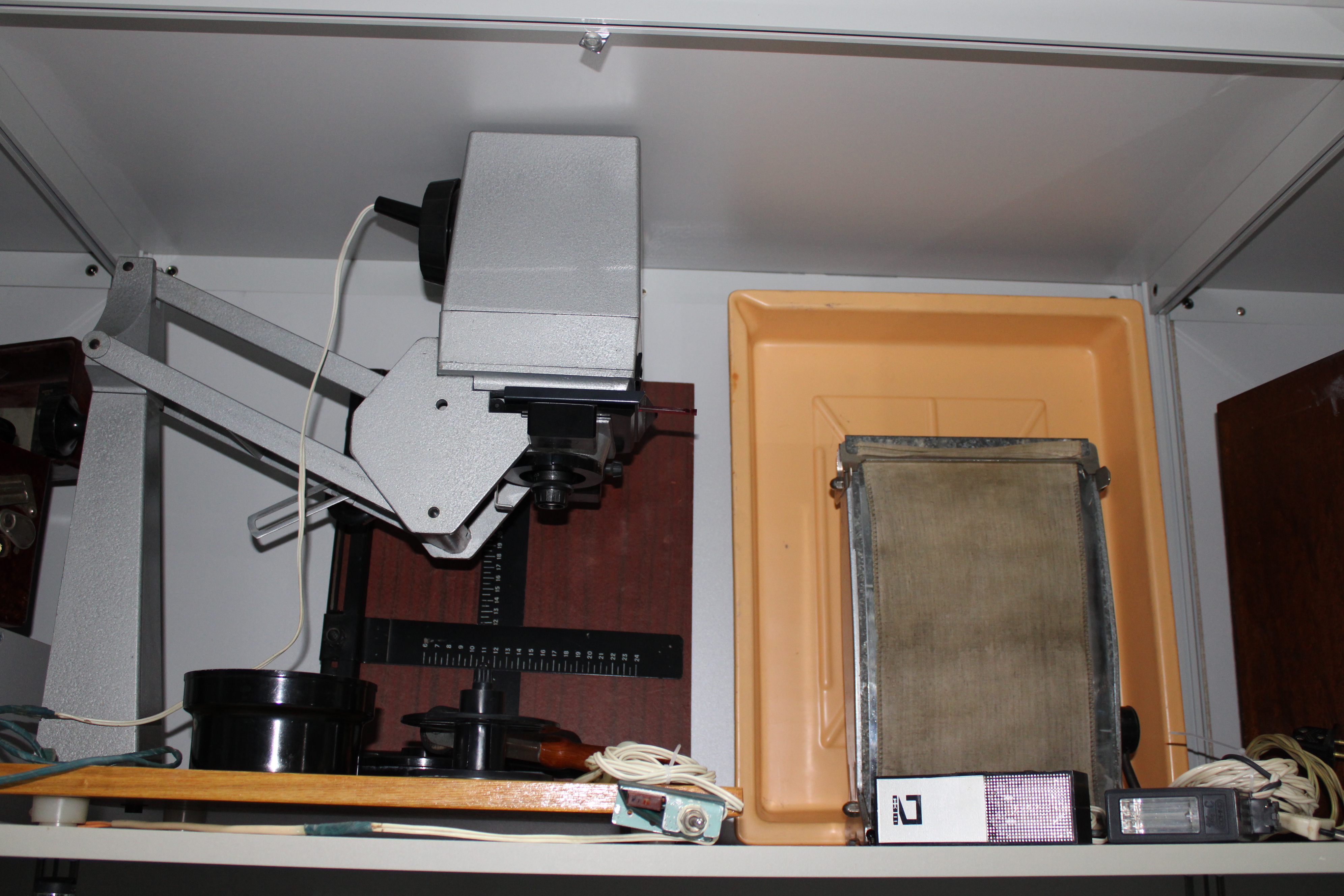 Глядя на фотооборудование, которое поступило в фонды, многие, особенно молодые люди, воскликнут: «А что это?». Мы живем в век цифровых технологий, и сегодня почти никто не применяет фотоэкспонометр, фоторезак, фотоглянцеватель, фотовалики и т. д. Кинооборудование тоже из «той», доцифровой эпохи: кинопроекторы, диапроекторы, видеокамеры и многое другое.