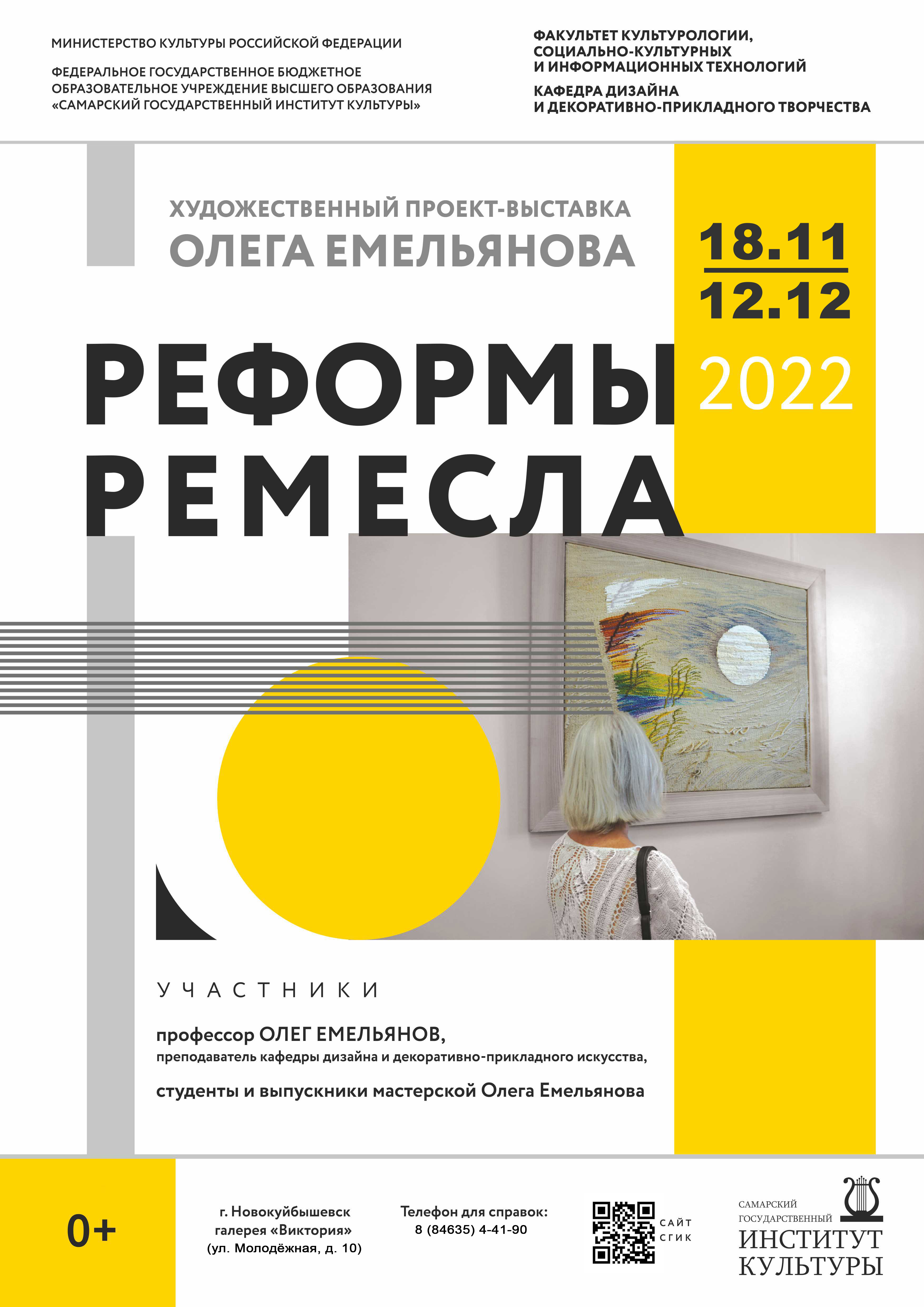 Выставочный проект самарского художника Олега Николаевича Емельянова объединяет творчество как мастеров, так и начинающих авторов декоративно-прикладного искусства. Олег Емельянов является признанным мастером гобелена, возглавляет Самарское отделение Творческого союза художников России, как педагог передает свои знания студентам Самарского государственного института культуры. Основой экспозиции выставки станут работы его учеников, также в состав выставки войдут работы самого Олега Николаевича Емельянова.