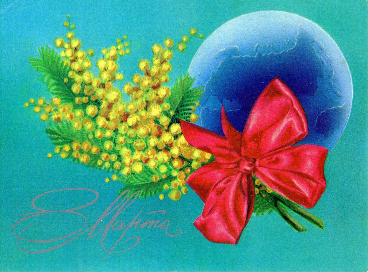 Так как 8 марта — международный праздник, на большом количестве открыток, посвящённых ему, можно было встретить изображение земного шара либо стилизованное, либо реалистичное.