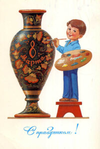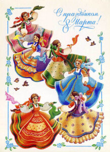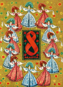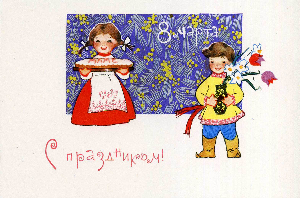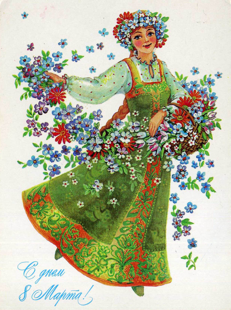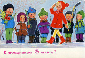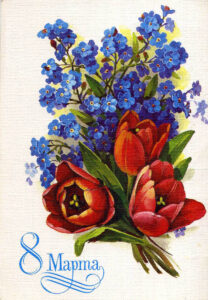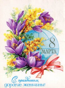 Каждый год 8 марта женщинам СССР дарили сотни тысяч всевозможных поздравительных открыток. Иллюстрации для таких почтовых карточек создавались лучшими советскими художниками. В фондах нашего музея в коллекции открыток, посвящённых Международному женскому дню, встречаются работы следующих художников-иллюстраторов: А. Плаксина, Б. Иванова, В. Воронина, Е. Дергилева, Т. Жебелевой, Л. Похитоновой, В. Четверикова, А. Любезнова, Г. Куртенко, Т. Панченко, В. Зарубина.