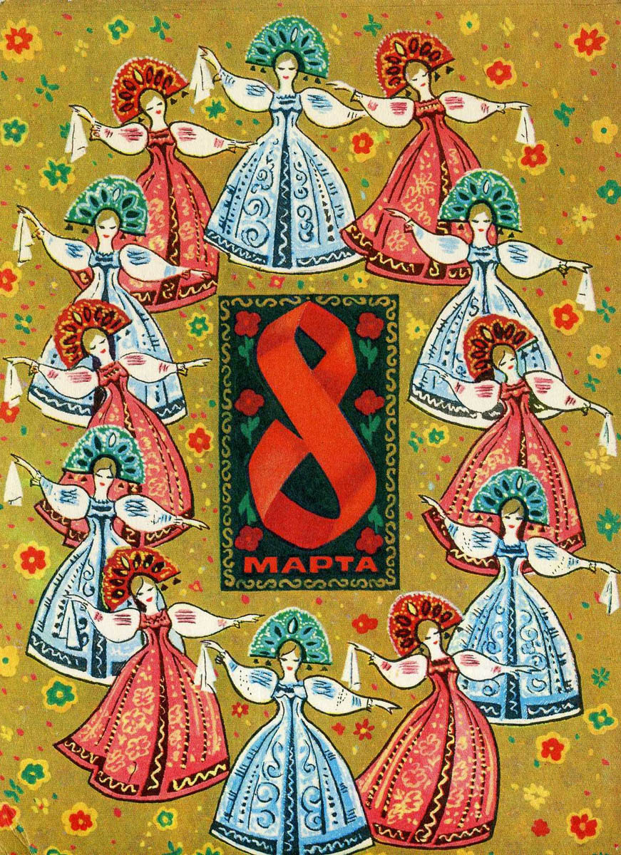 Вот как много разных сюжетов и тематик, посвящённых Международному женскому дню, затрагивали советские художники-иллюстраторы. К сожалению, в настоящее время традиционные бумажные открытки становятся все менее популярными. Вряд ли когда-либо удастся вернуть значимость открытки как явления культурной жизни. И всё-таки, как здорово было получать настоящие поздравления, а не шаблонные строки.