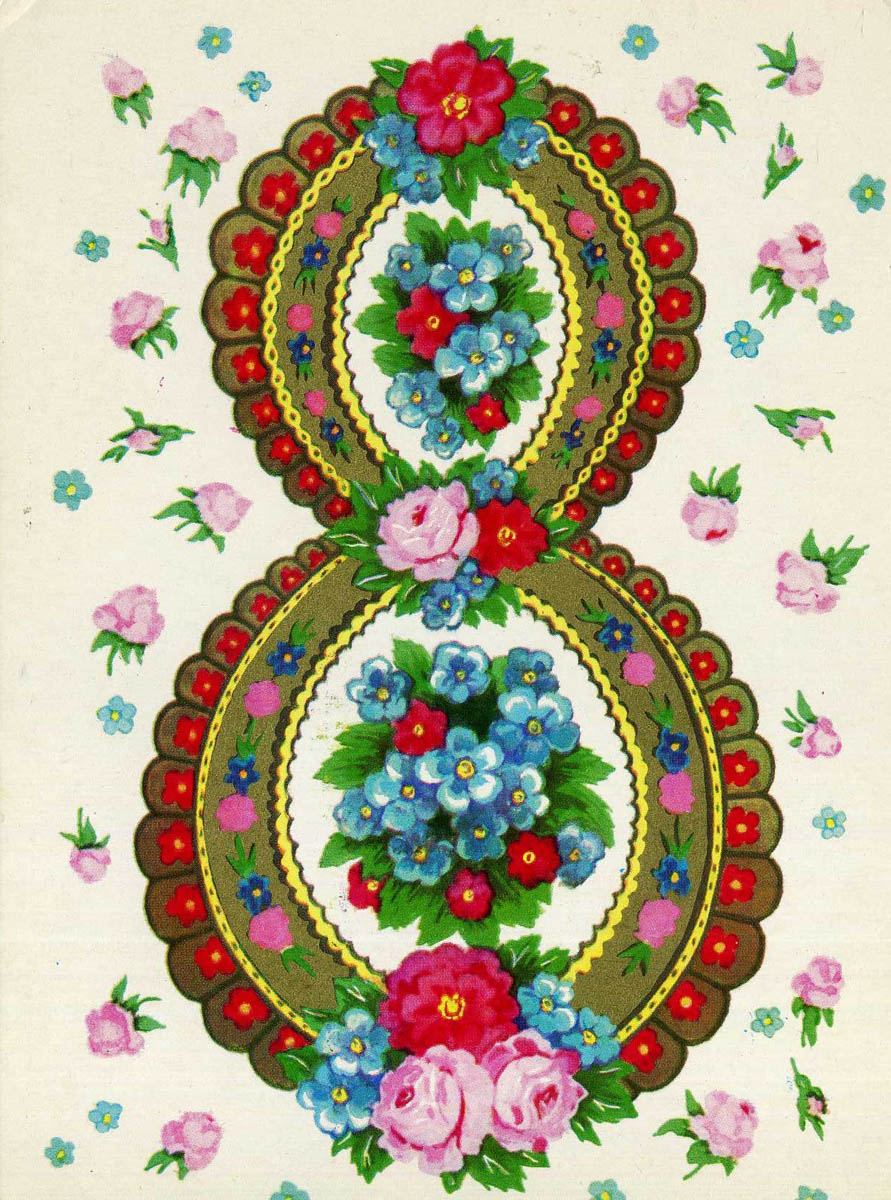 И конечно же, была масса открыток, главным действующим элементом которых была цифра 8 (изображалась крупно, во весь размер открытки).