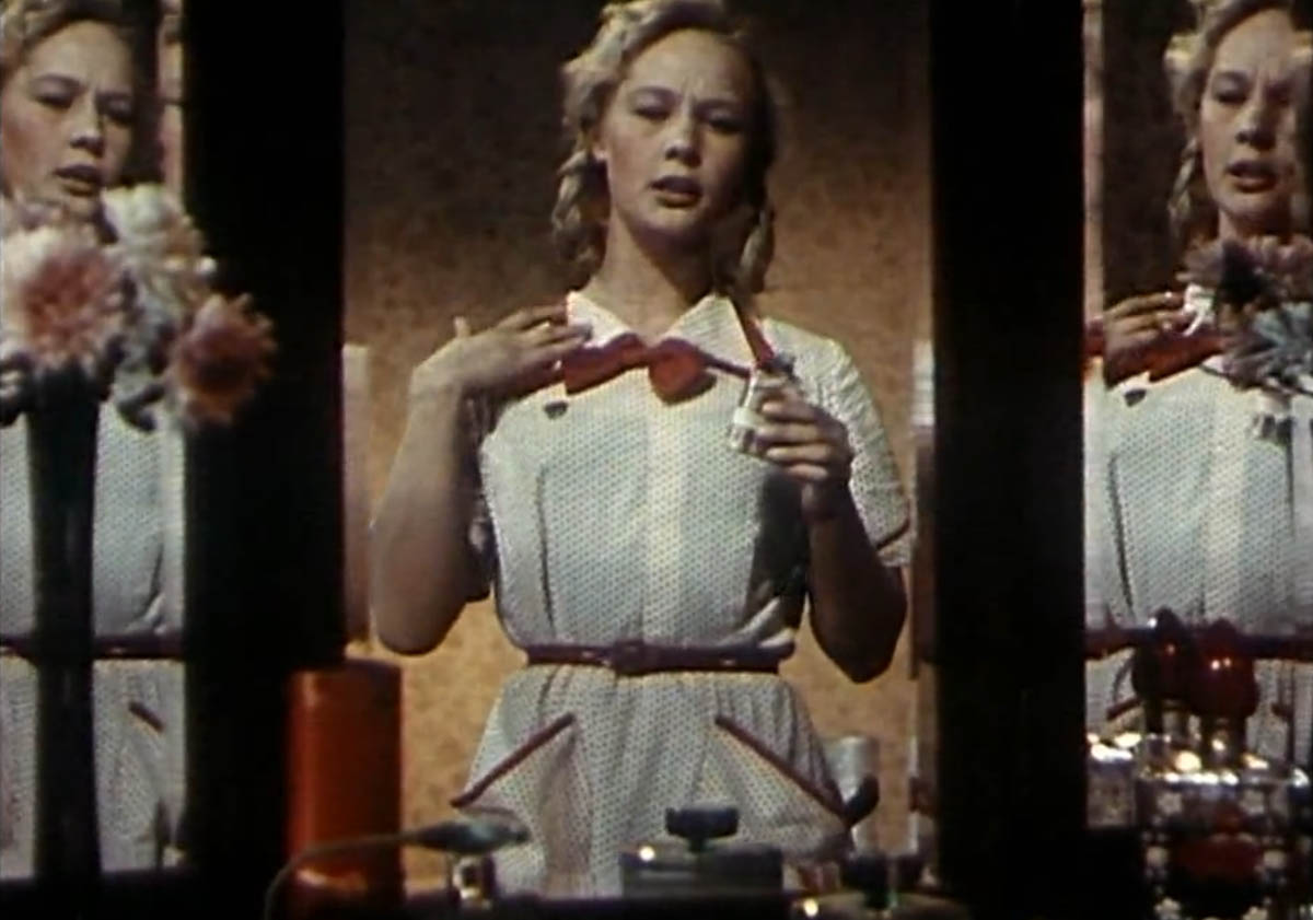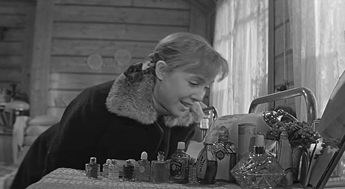 В любимом многими кинофильме «Девчата» духи появляются в момент, когда героиня заселяется в комнату в общежитии, а там на тумбочке стоит несколько флаконов, среди которых «Красная Москва».