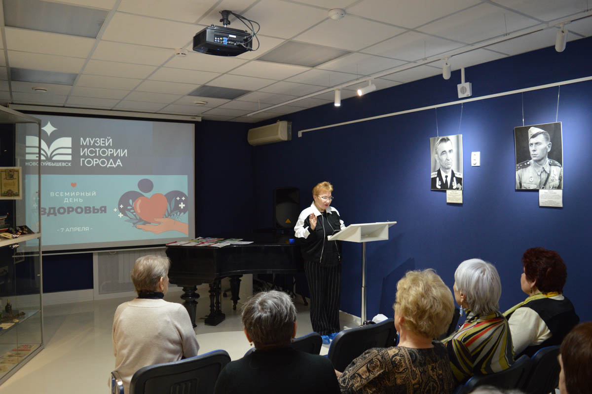 10 апреля в рамках ежегодного празднования Всемирного дня здоровья в музее состоялась встреча людей старшего возраста с заведующим Центром общественного здоровья и медицинской профилактики г. Новокуйбышевска Любовью Степановной Саяпиной.