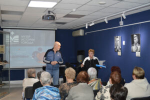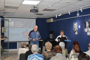 Гостем мероприятия стал Николай Константинович Бурмистров — ветеран спорта, тренер по скандинавской ходьбе. Он рассказал о физической активности и основах ее безопасности.