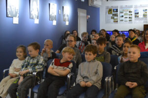 Гости музея посмотрели фильм, посвященный первому в мировой истории полету по орбите Земли, который совершил в 1961 году старший лейтенант Юрий Гагарин на космическом корабле «Восток-1». Именно с этого знаменитого полета началась эра активного освоения космоса.