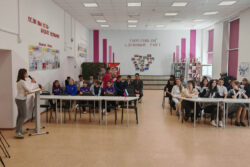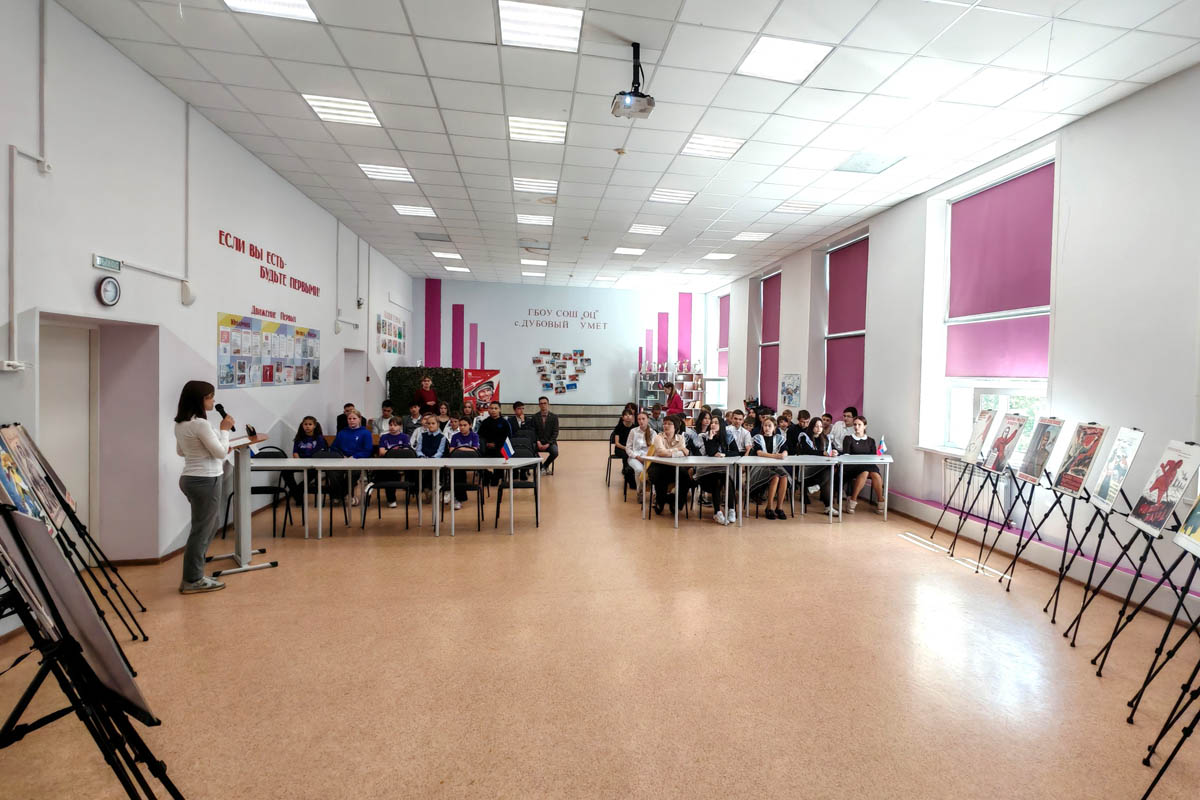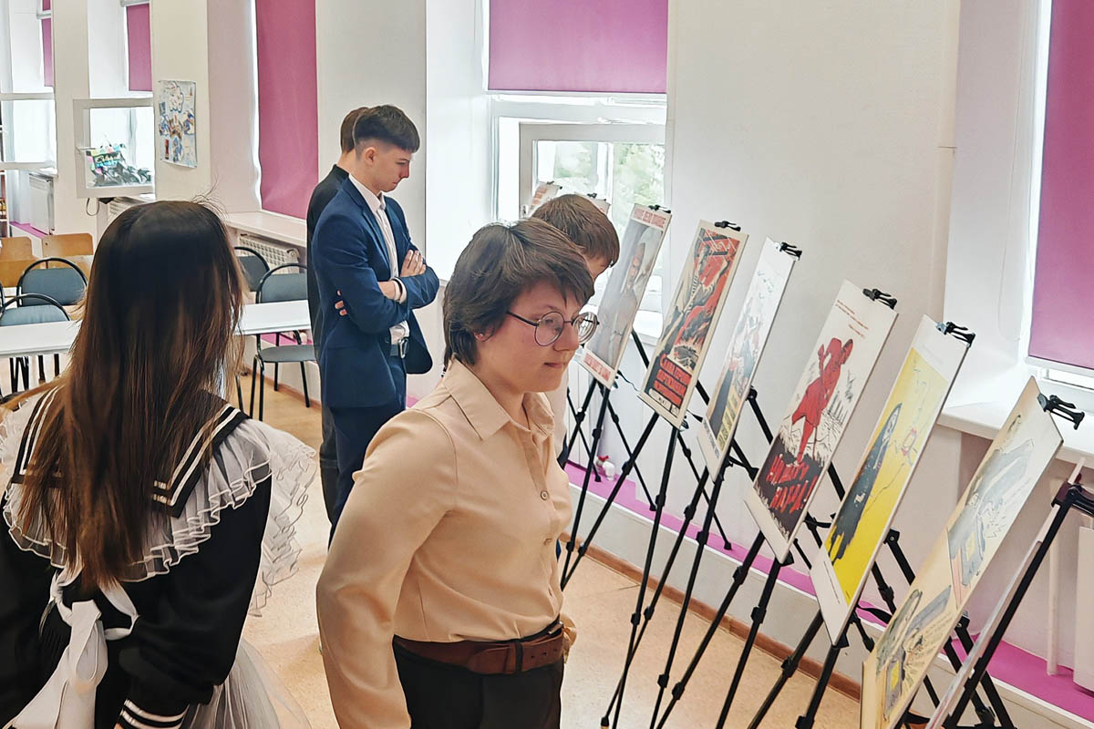 вот так же, когда-то, в далёком 1941-м, вчерашние девчонки и мальчишки праздновали окончание школы, строили планы на будущее: продолжить учиться или пойти работать на завод, а может поехать осваивать новые земли или остаться в родном селе — выбор огромный… Но планы на долгую и счастливую жизнь перечеркнула война… А грустные мысли экскурсовода прервал звонок на урок. Началась экскурсия, во время которой ученики поэтапно и наглядно знакомились с главными событиями Великой Отечественной войны. Также, вовлекаемые в краткий диалог, ребята учились «читать» плакаты, чтобы понимать замысел художника.
