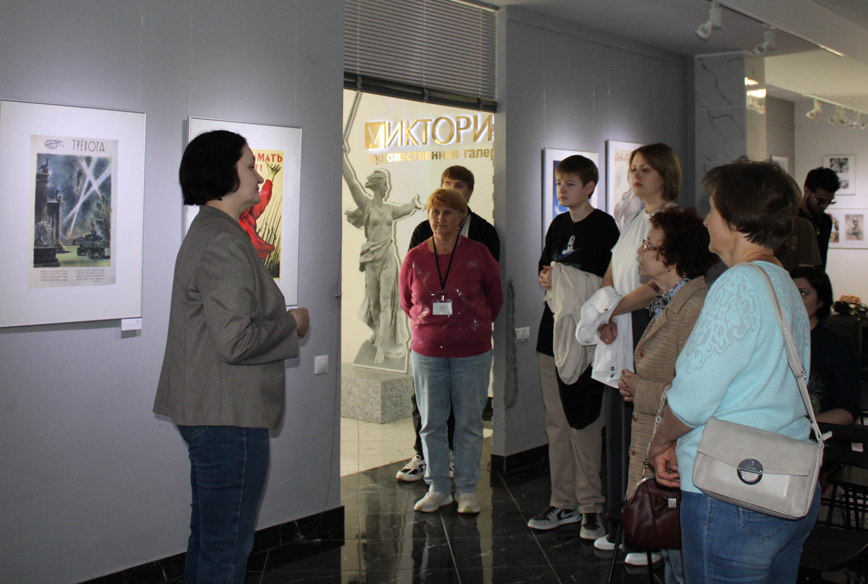 Гости мероприятия прослушали увлекательную экскурсию по выставке «Великий подвиг советского народа» и песни времен Великой Отечественной войны в исполнении преподавателя ДШИ «Лира» Павла Геннадьевича Васильева.