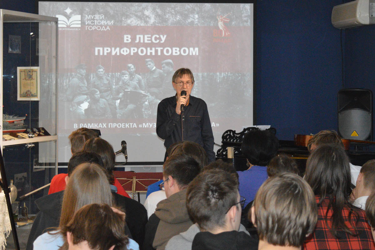 В Информационно-образовательном центре «Русский музей: виртуальный филиал» в рамках проекта «Музейная нетишина» состоялась музыкально-творческая встреча «В лесу прифронтовом», посвящённая военной песне.