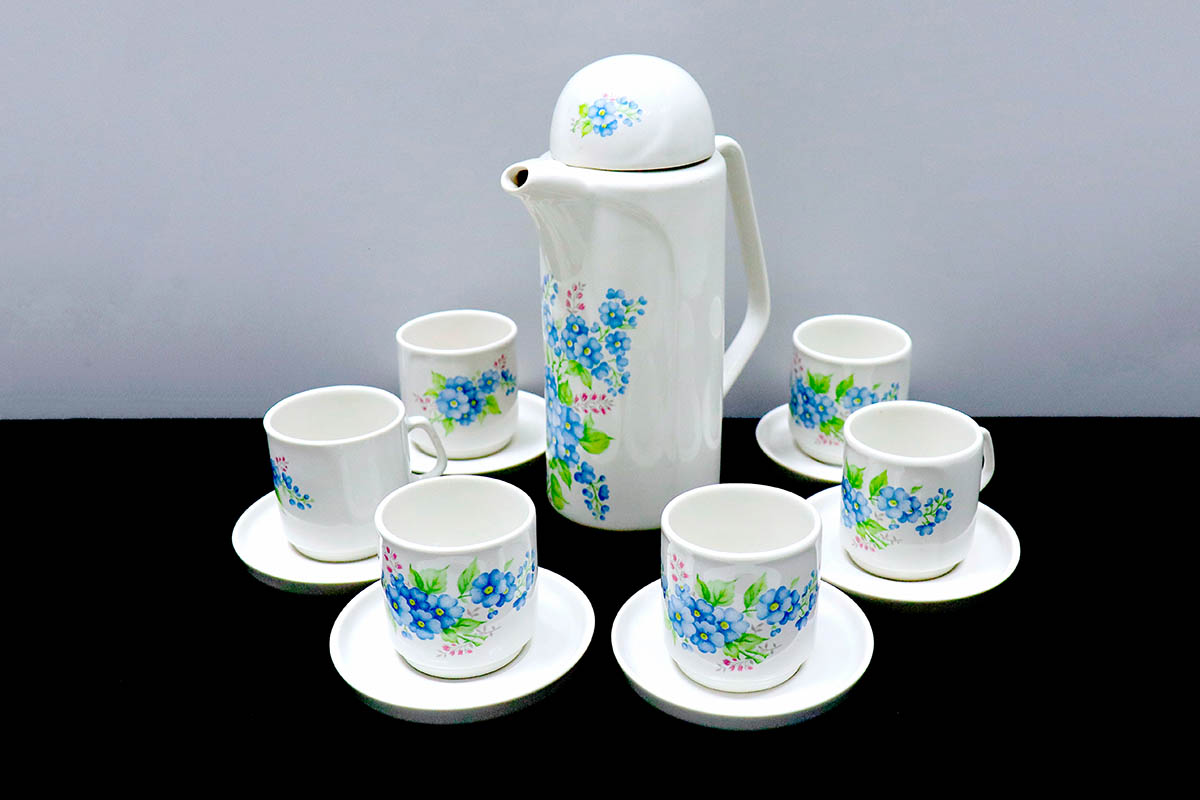 Коллекцию «Этнография и быт» дополнили новыми предметами. Среди них кофейный сервиз Бугульминского фарфорового завода 1982 года и чайные пары Богдановичского фарфорового завода 1973 года.
