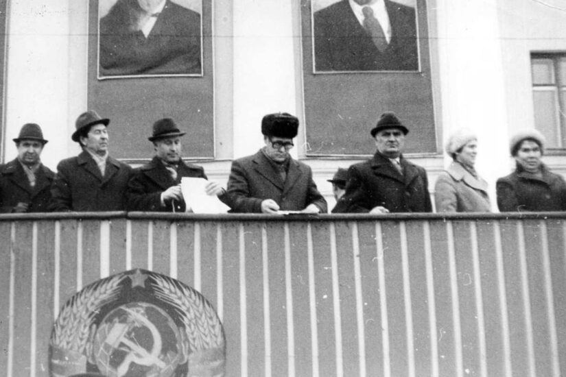 - Пугин П. П. на демонстрации посвященной Великой Октябрьской революции на площади Ленина г. Новокуйбышевска