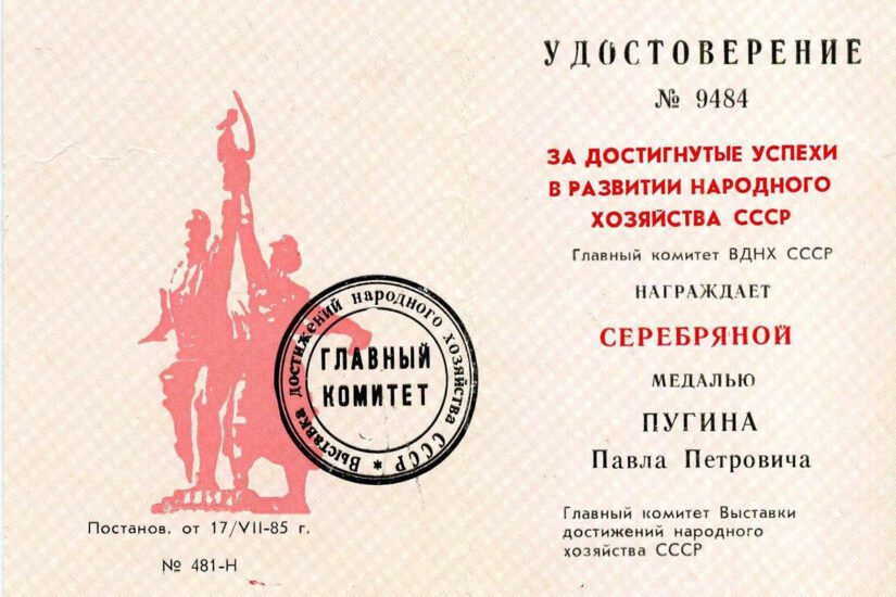 - Удостоверение к серебряной медали Главного комитета ВДНХ СССР