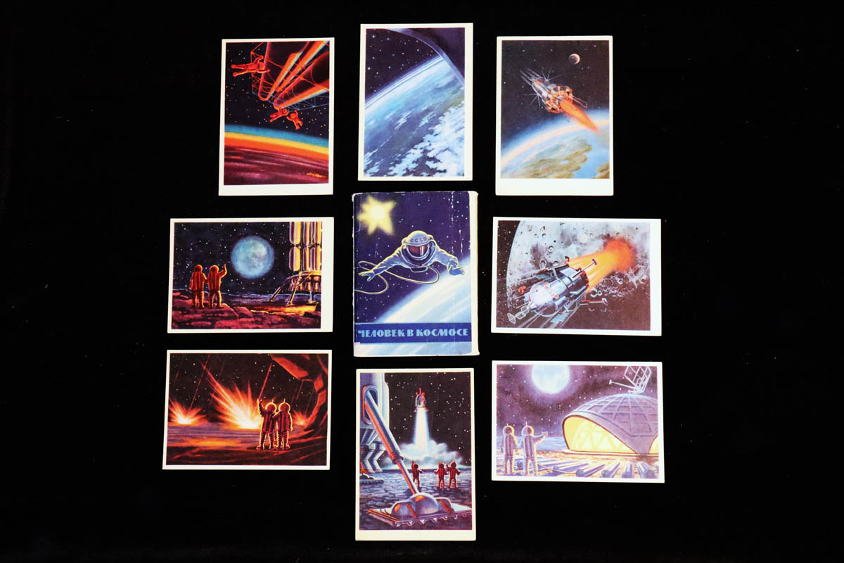Для музейных фондов особенно значимы экспонаты из коллекции «Документы», так как они представляют собой важные источники информации. В этот раз на хранение поступил набор открыток «Человек в космосе» от издательства «Советский художник» 1965 года. Авторы рисунков на этих открытках: космонавт Алексей Леонов, который совершил исторический выход в открытый космос, и художник Андрей Соколов.