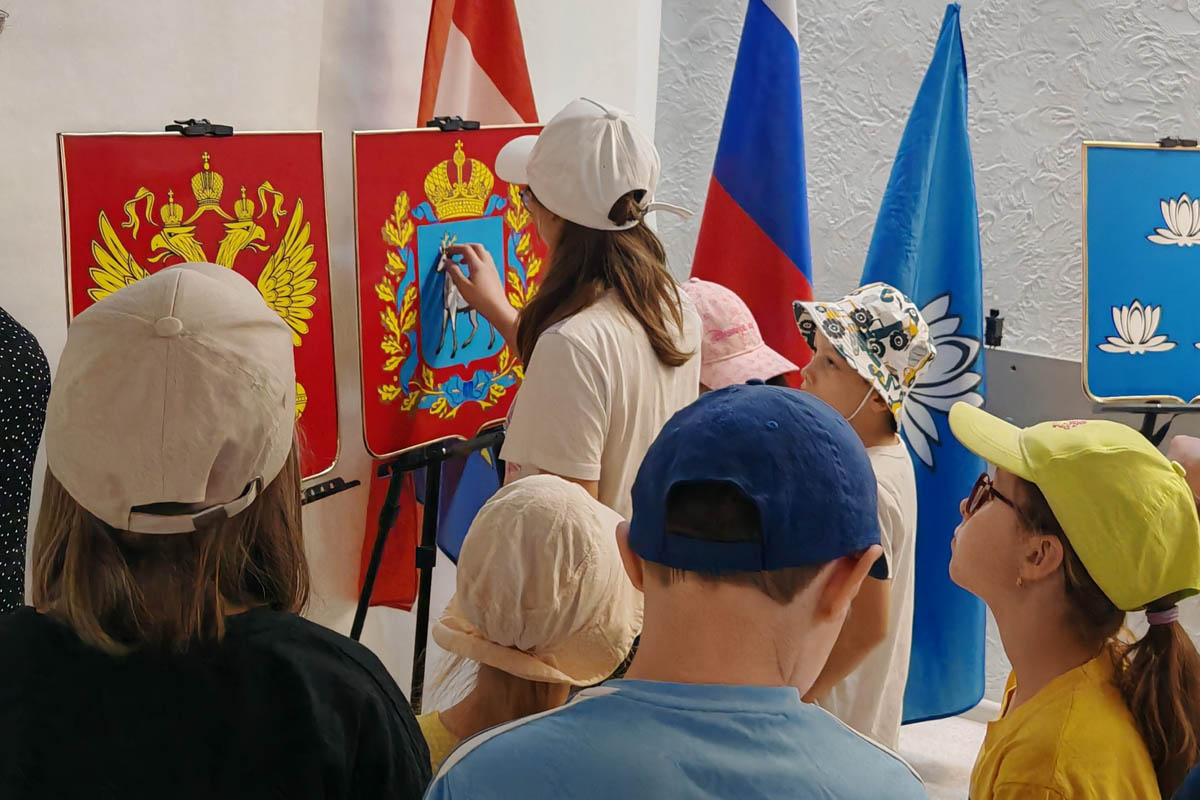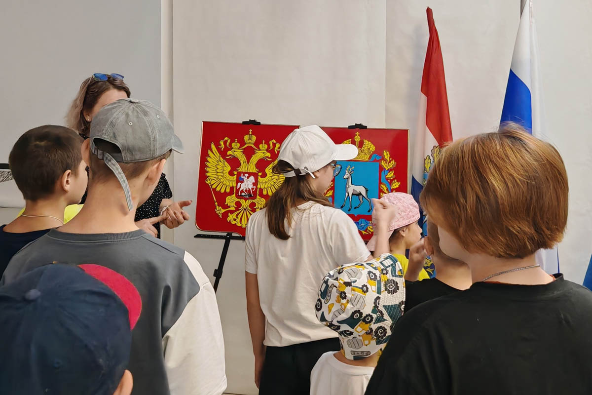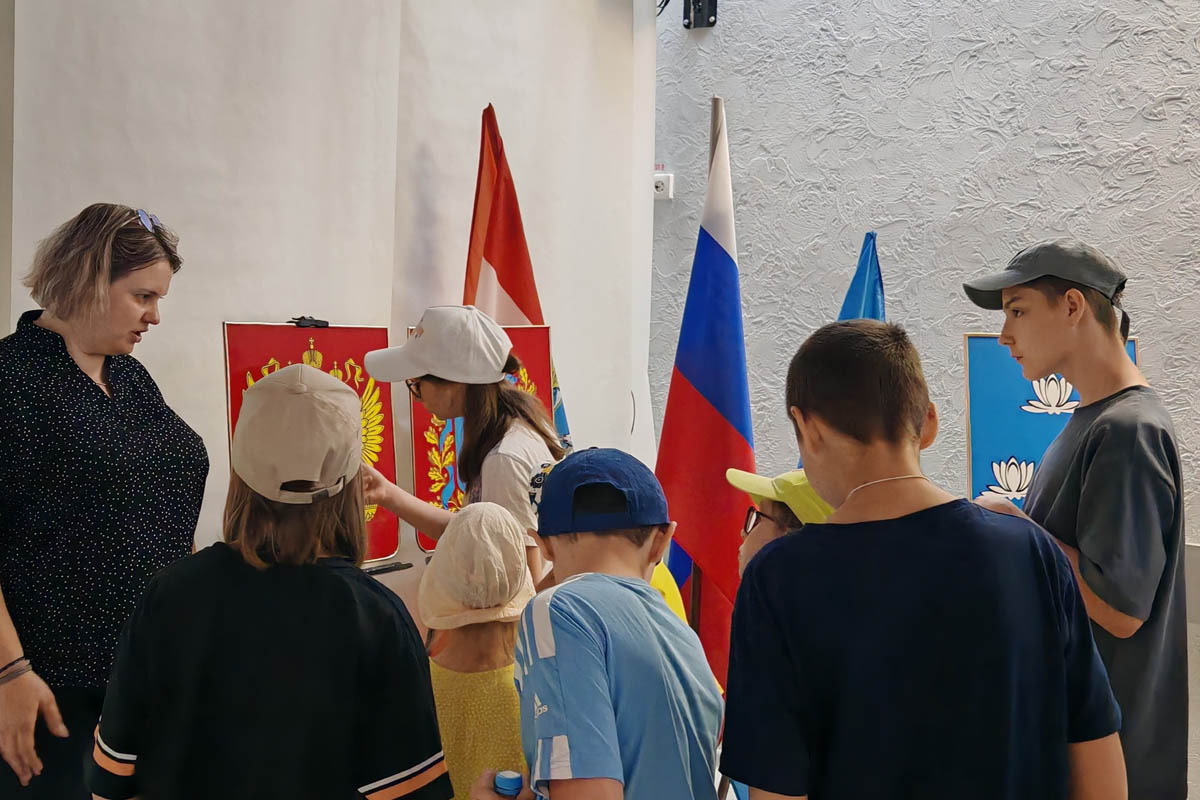 10 июня для ребят, отдыхающих в детском лагере «Солнечный» сотрудники музея провели экскурсию по выставке «Душа России в символах её». Детям рассказали об официальных государственных символах Российской Федерации, о символике Самарской области и города Новокуйбышевска. Юные экскурсанты узнали о значении флага, герба и гимна страны, а также об их исторической и культурной ценности.