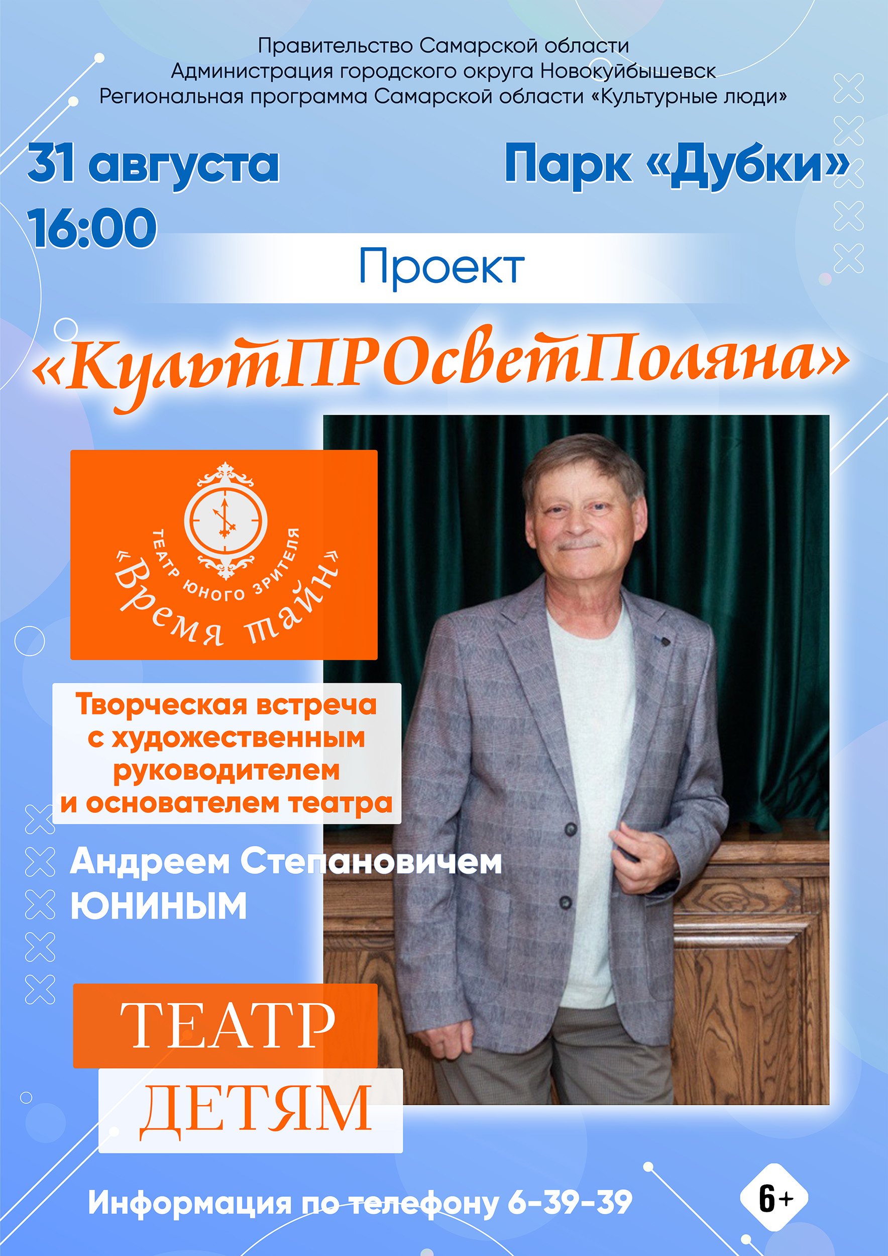 Содержание: видеоматериалы (история театра «Время тайн»), творческая встреча с художественным руководителем театра «Время тайн», заслуженным работником культуры Самарской области — Юниным Андреем Степановичем. В рамках встречи пройдут мастер-классы от ведущих актеров театра по актерскому мастерству, сценическому движению.