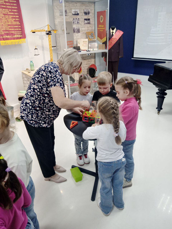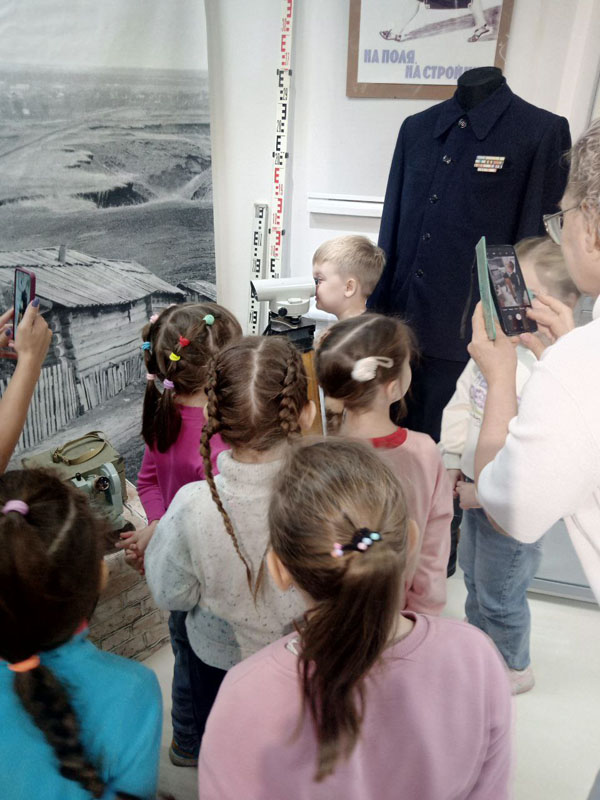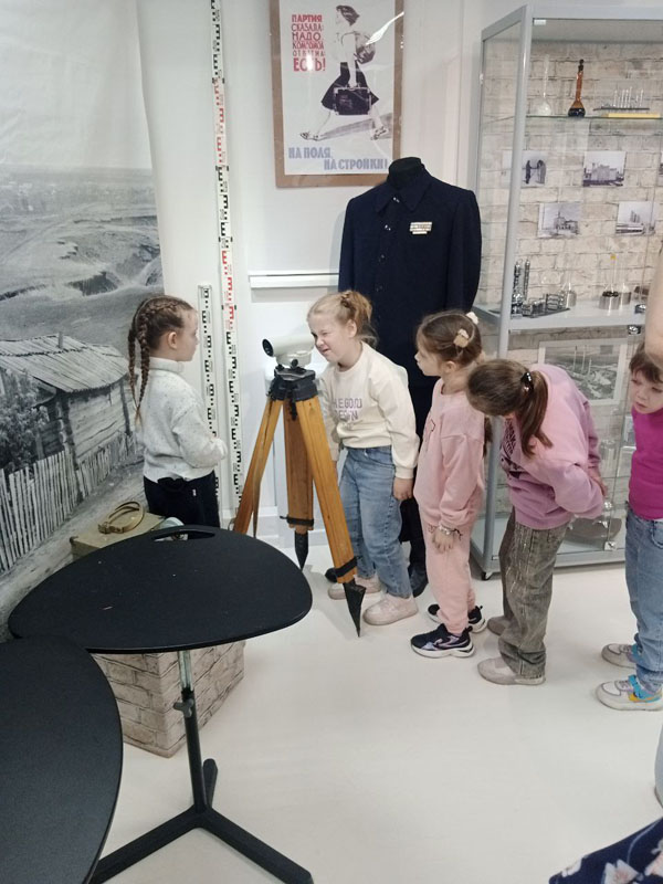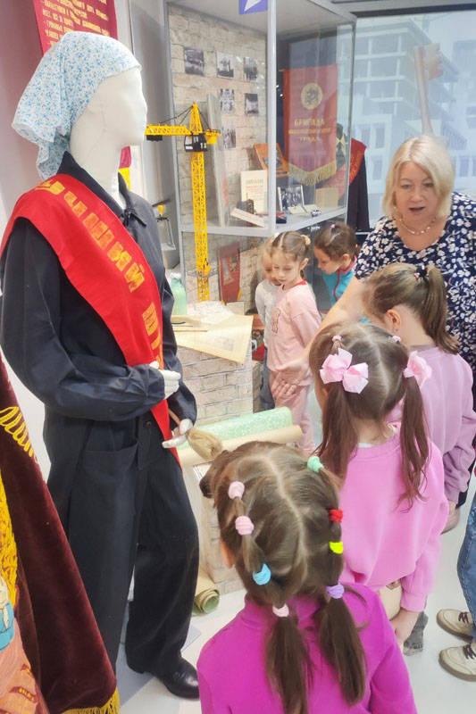 Дети познакомились с профессией строителя, а также узнали о геодезистах, каменщиках, плиточниках, сварщиках, малярах-штукатурах, монтажниках и крановщиках. В завершение встречи юные гости осмотрели экспозицию, посвящённую строительно-монтажному тресту № 25, которому в этом году исполнилось 85 лет.