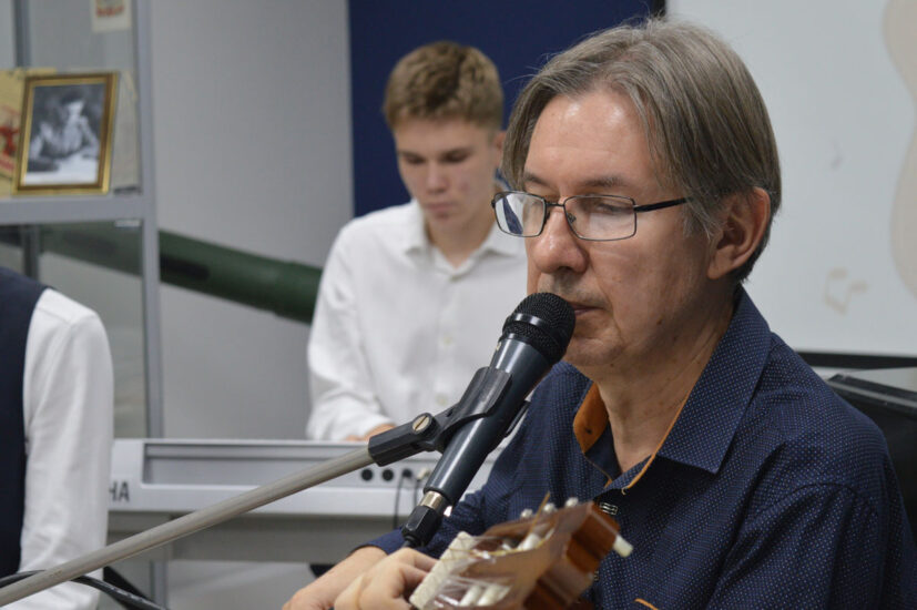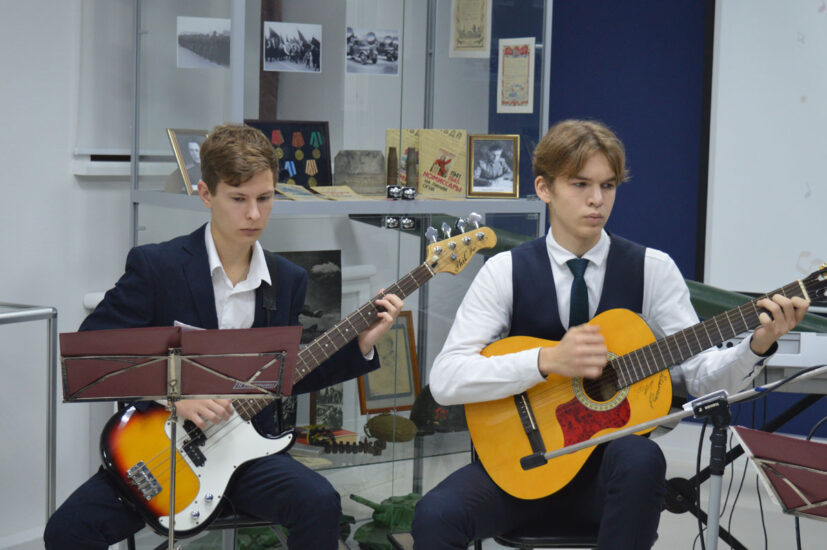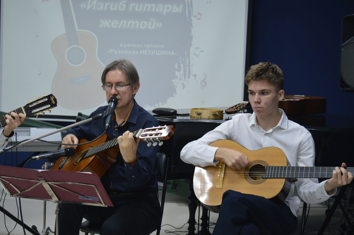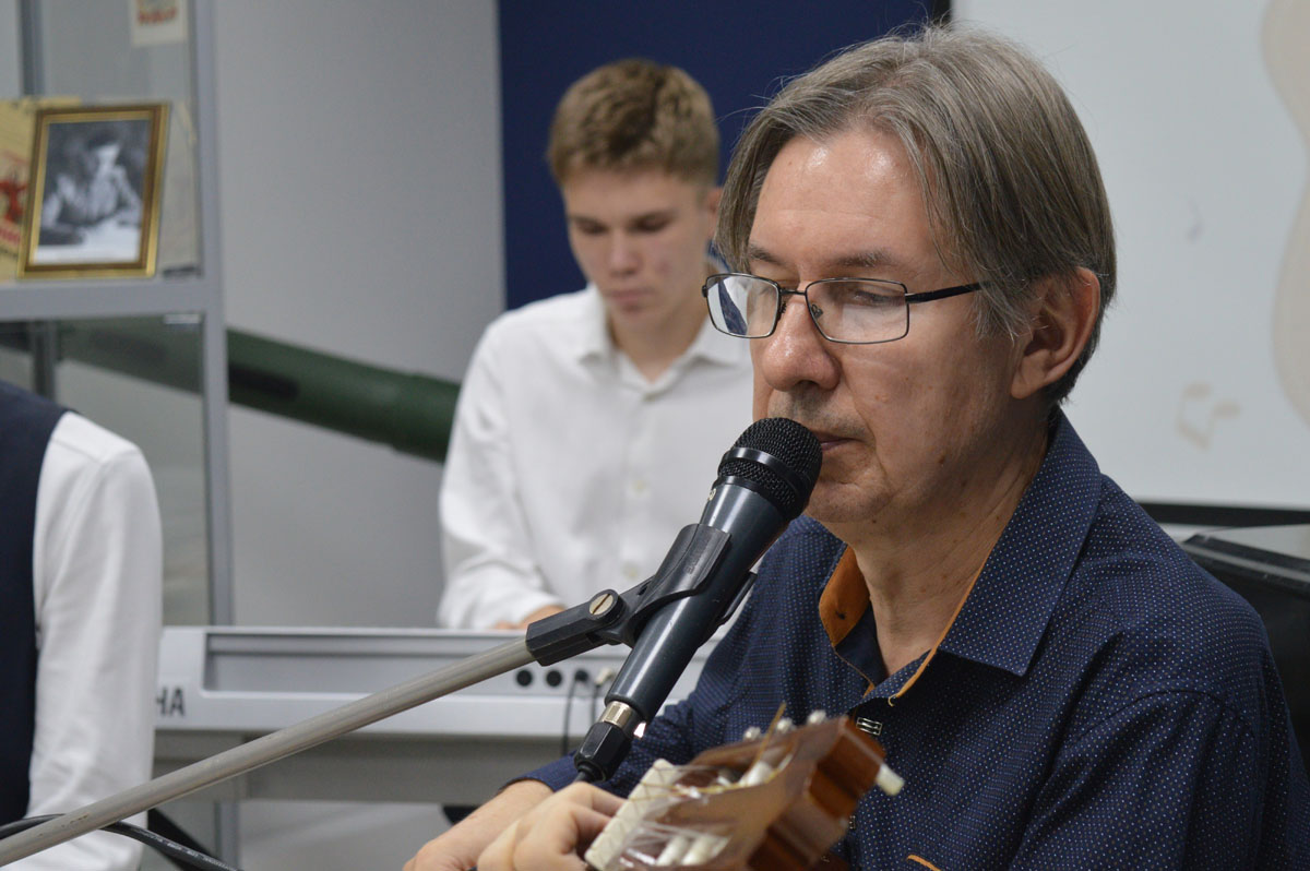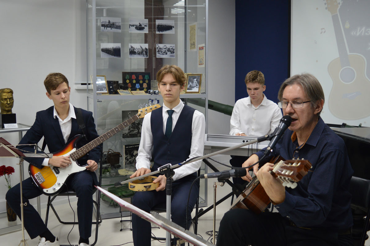 Преподаватель игры по классу гитары Детской школы искусств «Лира» Павел Геннадьевич Васильев поделился интересными историями из жизни Сергея Есенина, Булата Окуджавы, Олега Анофриева, Владимира Высоцкого, Джо Дассена, Владимира Высоцкого. В исполнении Павла Геннадьевича и его учеников прозвучали знакомые всем композиции из мультфильмов «Бременские музыканты» и «В порту», из кинофильмов «Земля Санникова», «Вертикаль», «Офицеры».